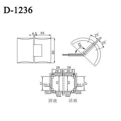 Standard 135 Degree Glass To Glass Grid Shower Hinge